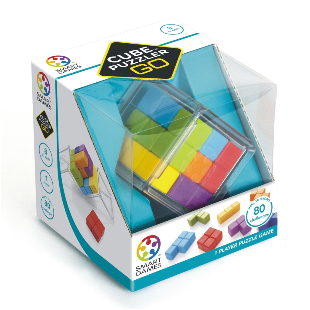 Kutija Cube Puzzler GO-a će vam poslužiti kao atraktivno postolje za igru. Otvorite providnu kocku kako biste je pretvorili iz kutije u postolje za igru, izaberite izazov i započnite sa igrom. Igra uključuje knjižicu sa 80 3D izazova i rešenja. Iskoristite je i podstaknite svoj prostorni vidik, logiku i veštine dedukcije da stvorite kocku kako biste rešili svaki izazov!