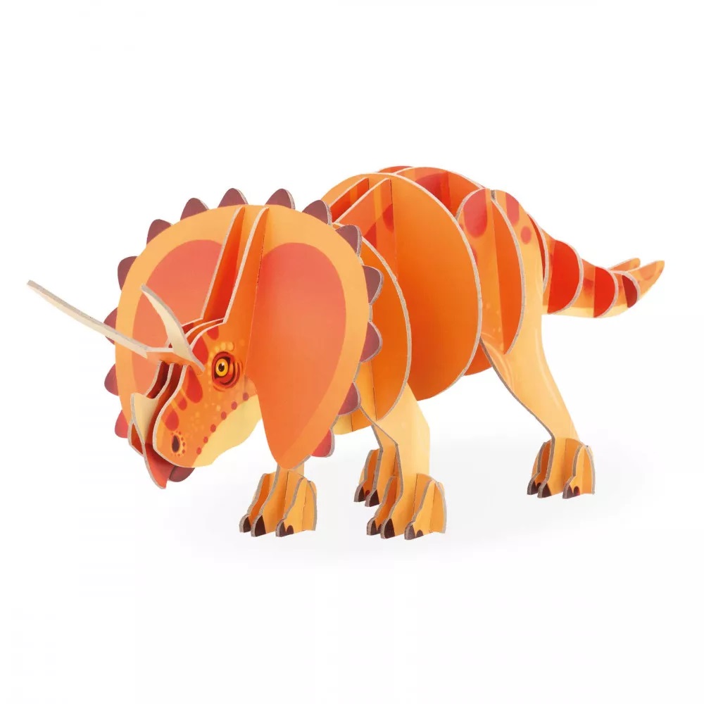 Ova vrsta dinosaurusa se ističe velikim naborima i tri ogromna roga na glavi! Ovaj sjajan 3D Triceratops se sastavlja bez lepka, što znači da se može sastavljati i rastavljati iznova i iznova. Takođe je idealan za ukrašavanje spavaćih soba svih ljubitelja dinosaurusa! Ova igračka istovremeno razvija dečju koncentraciju, logiku i maštu.