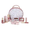 Cvetna torbica dolazi sa 10 drvenih kozmetičkih proizvoda pomoću kojih će lako oponašati mamino šminkanje.
