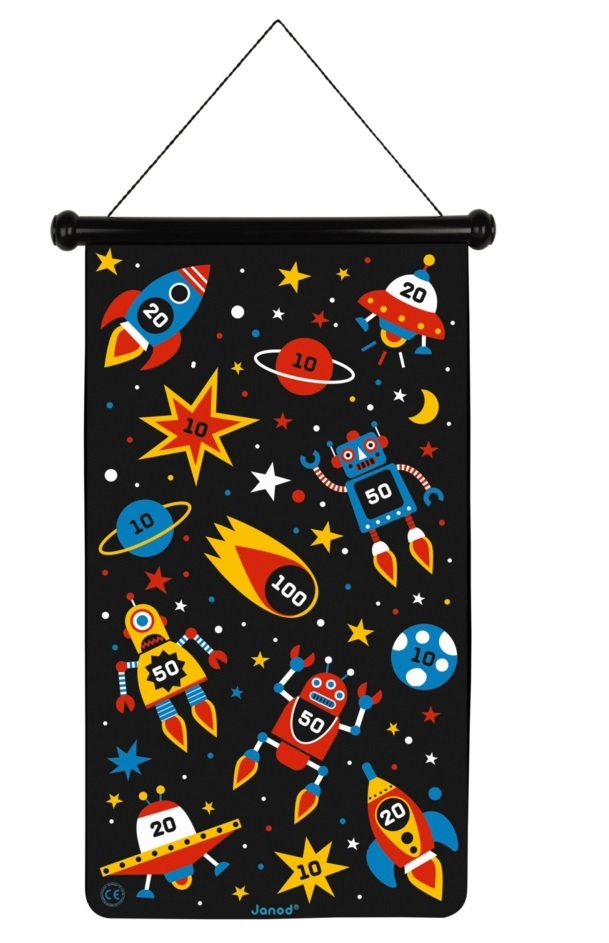 Podloga se lako stavlja na zid pomoću kanapa, što znači da je možete lako premestiti bilo gde, iznutra ili spolja. Podloga je dvostrana, tako da možete vežbati na 2 različite table, a 6 strelica su magnetizovane radi veće sigurnosti. Više od zabave, ova igra je savršena za razvijanje motoričkih veština i koncentracije vašeg deteta. Isporučuje se sa 6 plastičnih strelica (3 crvene i 3 žute) i pamučnim kanapom.