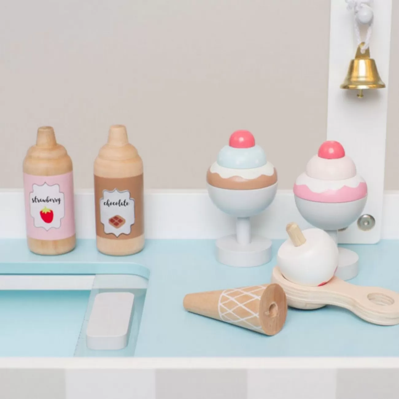 Svi vole sladoled! U ovoj specijalizovanoj prodavnici se nalazi 8 različitih sladoleda, korneti i preliv od jagode i čokolade. Da li će prodavati sladoled ili ga kupovati, učiti osnovne računske operacije prilikom vraćanja kusura ili izmišljati sastojke i opisivati svaki sladoled ponaosob, to je odluka same dece. Ono što je sigurno je da će im ova igračka doneti sate i sate zabave, ali i podstaći njihovu kreativnost, socijalnu interakciju i maštu.